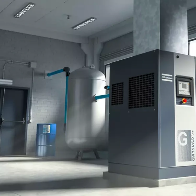 Some air compressors are "tank-mounted", which means they are provided as a complete unit and installed on top of the air receiving tank. The use of tank-type air compressors not only saves space but also reduces the initial installation cost required for the installation of individual dryers. This configuration is very common in small air compressors, and the output power usually does not exceed 26 kilowatts (or 35 horsepower). Large air compressors are not suitable for tank installation designs as this would result in a top-heavy setup, potentially posing safety hazards.