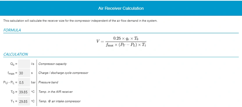 Minimizing pressure fluctuations/drops: The air receiving tank is used to minimize pressure fluctuations that may affect the production process and product quality. When choosing the right air receiving tank for your compressor, two values need to be noted: the output pressure of the compressor and the application requirements at the point of use. Please note that the compressed air stored in the air receiving tank is only useful when its pressure is sufficient to support the corresponding process. Therefore, the duration for which the air receiving tank supplies gas at the pressure required by the end user/equipment (in minutes) must be taken into account.