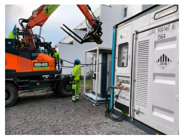 Atlas Copco Fast Charger works with the ZBC container energy storage system to feed an electric excavator