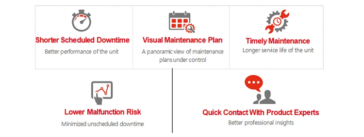 You will enjoy regular shipment of spare parts and daily mainte- nance reminder, 5 years' airend warranty (for new oil-flooded rotary RM Screw Air Compressor)