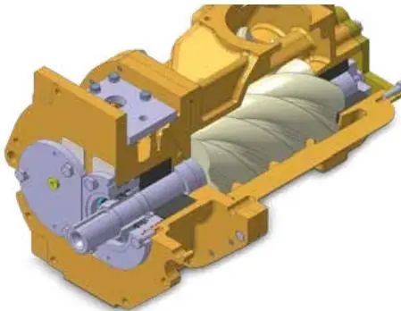 AQ series compressor core-unique water injection twin screw rotor, efficient operation closer to isothermal compression.Ultra-high strength polymer composite rotor, optimized rotor profile and water-lubricated bearings ensure that the rotor is not contaminated by oil and produce pure oil-free compressed air.
