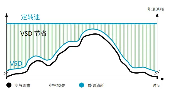 Traditional constant speed compressors have only one speed and are 100% open.This results in a significant waste of energy when demand is low.